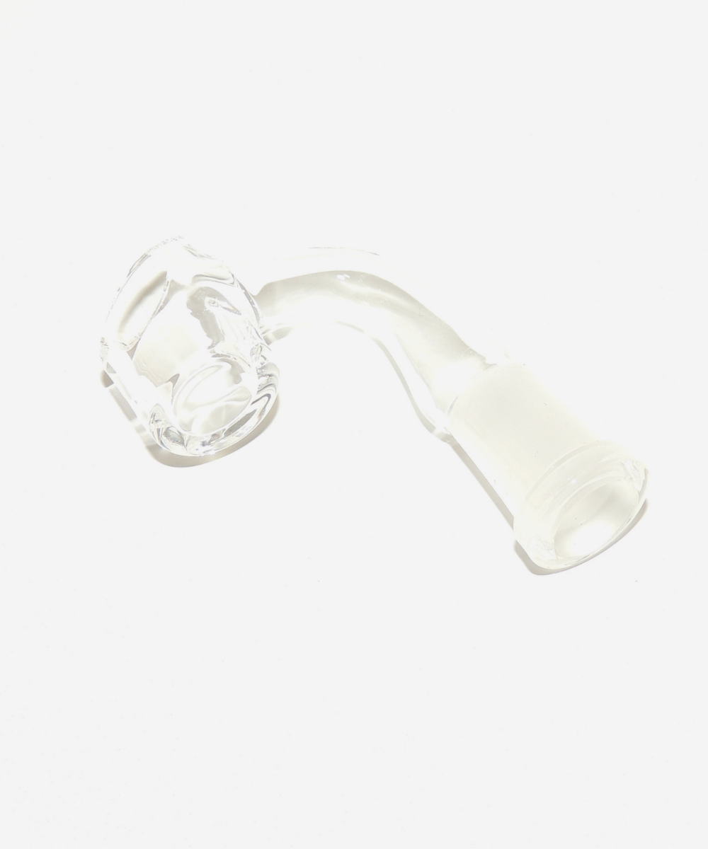Dark Crystal Glass is known for their high quality Quartz Bangers. This thick quartz banger has a 10mm female fitting and sits at a 90° angle. The quartz banger also features a slanted bucket and is made in Canada.