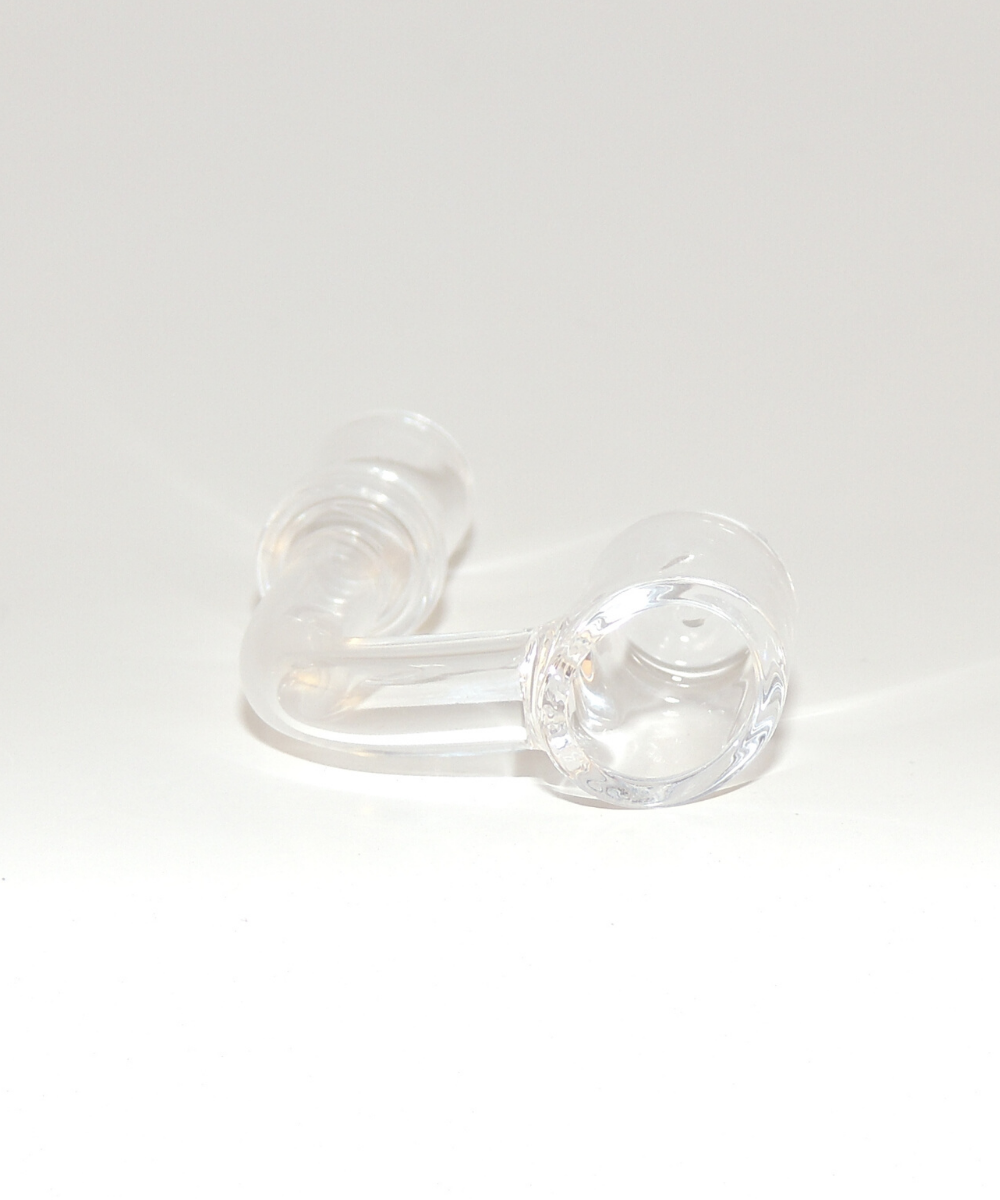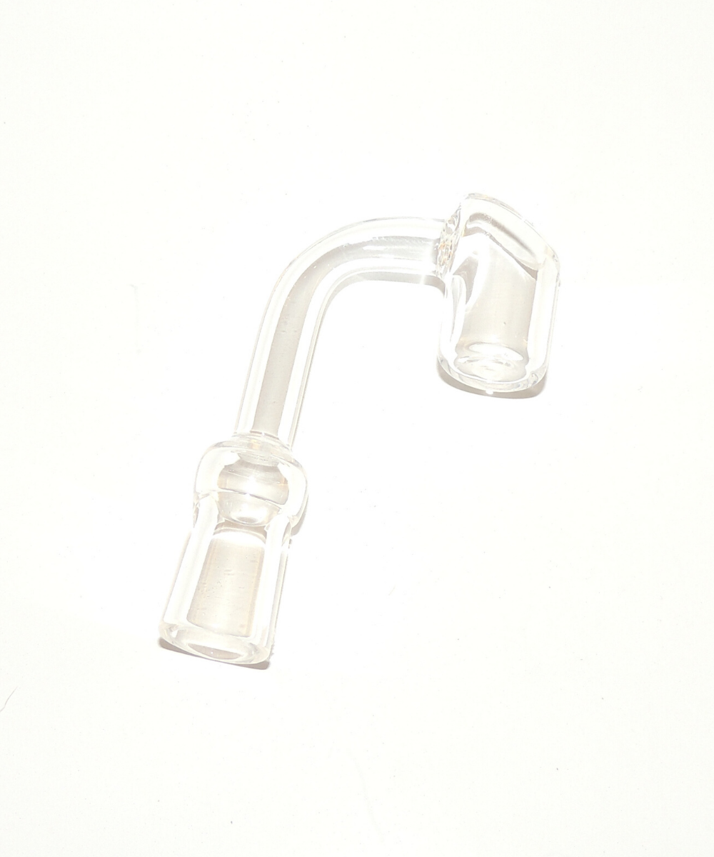This banger has a 10mm female joint size on a 90° angle. It is made of quartz and has a slanted top.