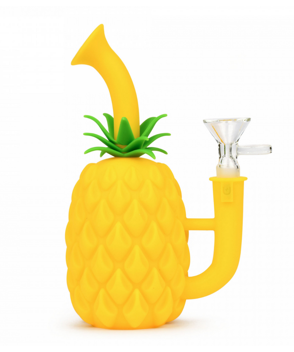 This adorable Silicone Pineapple Water Pipe stands 7" tall and is made of food grade silicone. Included is a basic 14mm martini bowl, and comes apart at the top for easy cleaning! Available in fun colours!