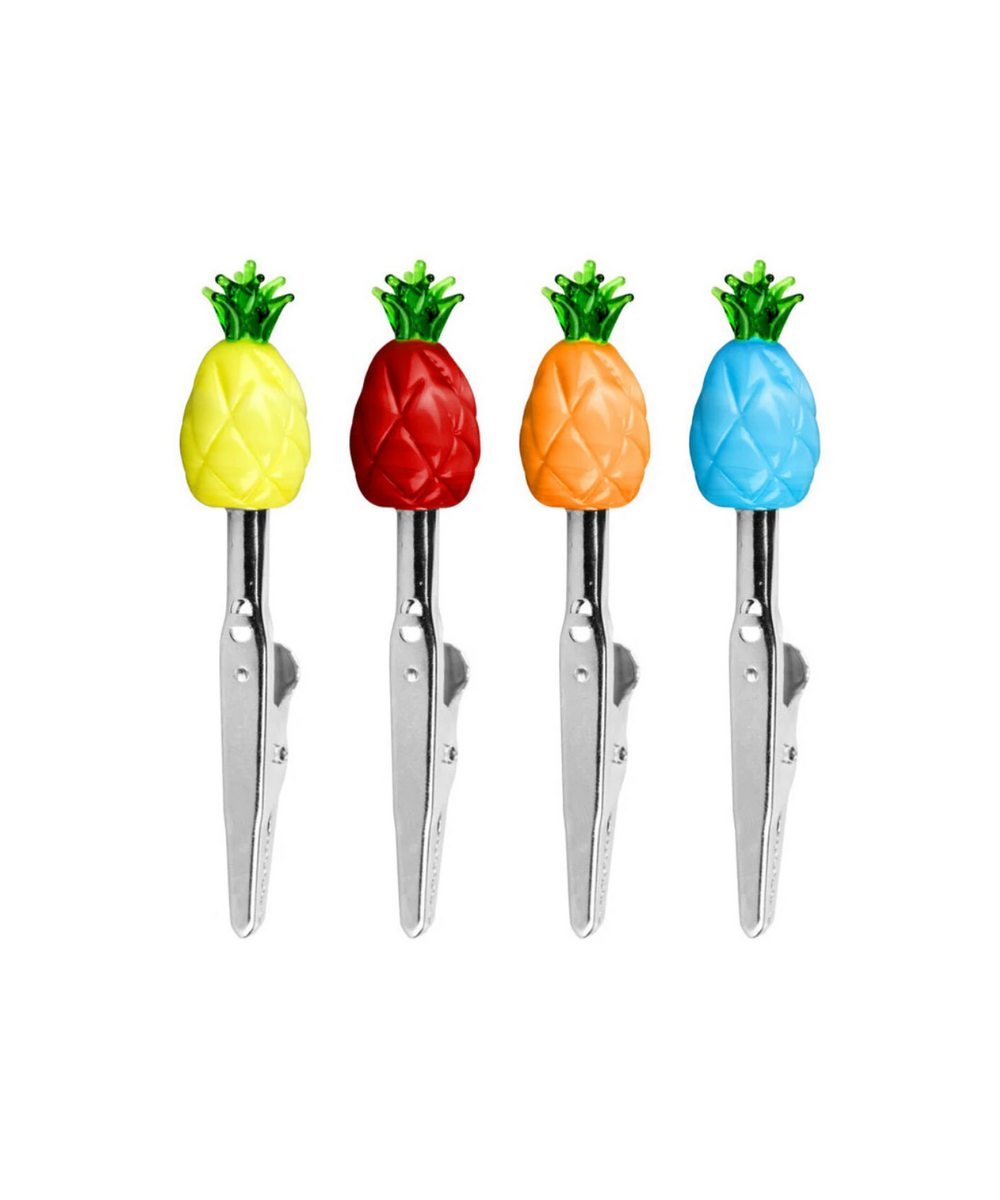 These small metal joint clips are perfect for holding your pre-rolled smokes during your smoke sesh. Each clip has a hand blown glass pineapple on the top.