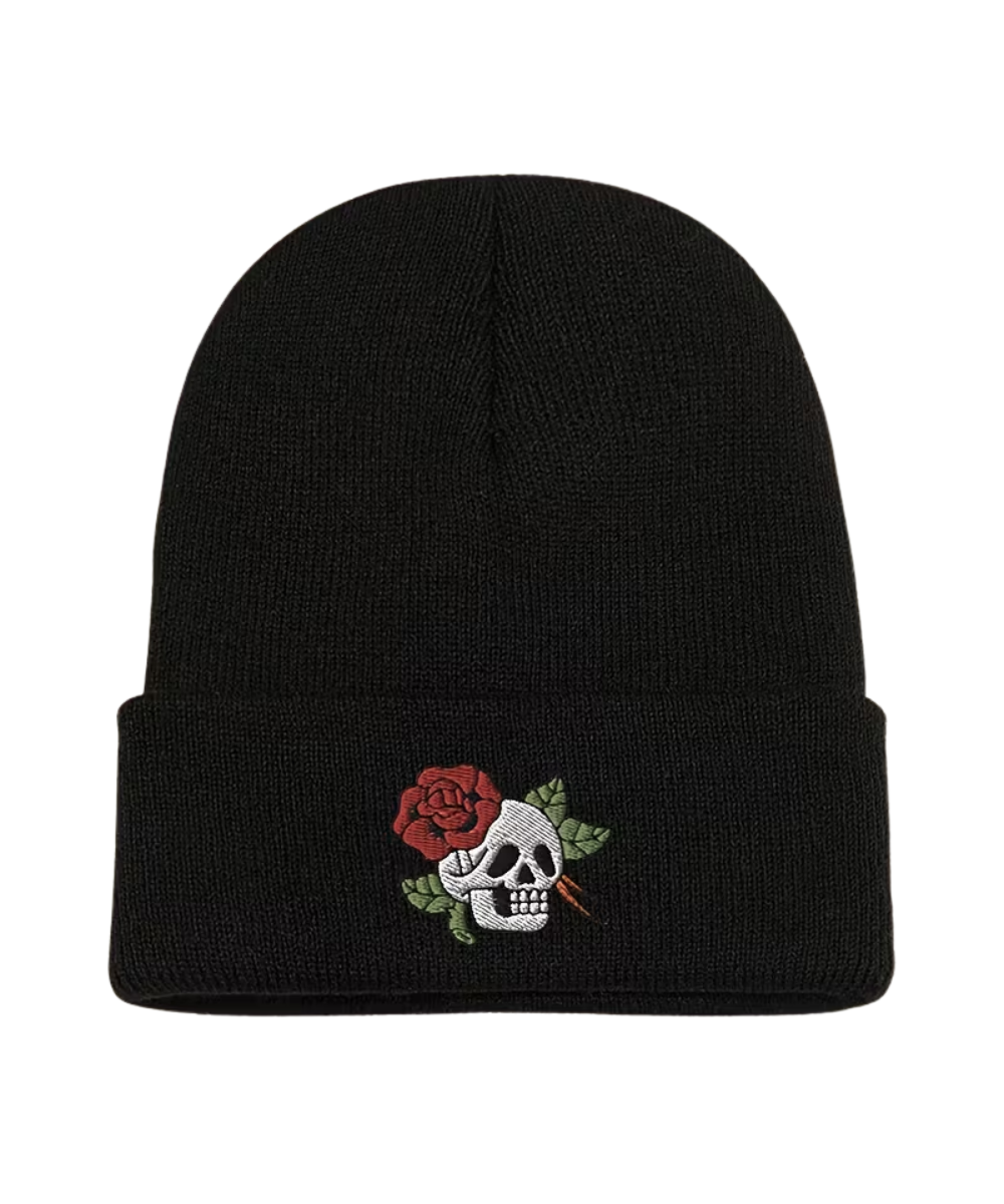 Add edgy style and warmth to your look with the Skull & Rose Embroidered Toque. Featuring detailed skull and rose embroidery, this cozy knit toque blends bold design with everyday comfort. Perfect for cold weather, streetwear outfits, or adding a dark floral touch to your style. A standout accessory for anyone who loves unique, expressive headwear.