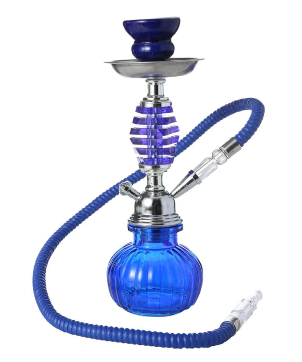 This Single Hose Hookah is 10" tall and includes a base, a bowl, a washable hose, a tray and grommets.