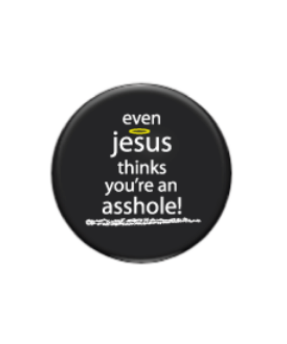 This "Even Jesus Thinks You're An Asshole" magnet has a 1.25" diameter and will spice up any fridge or magnetic surface!