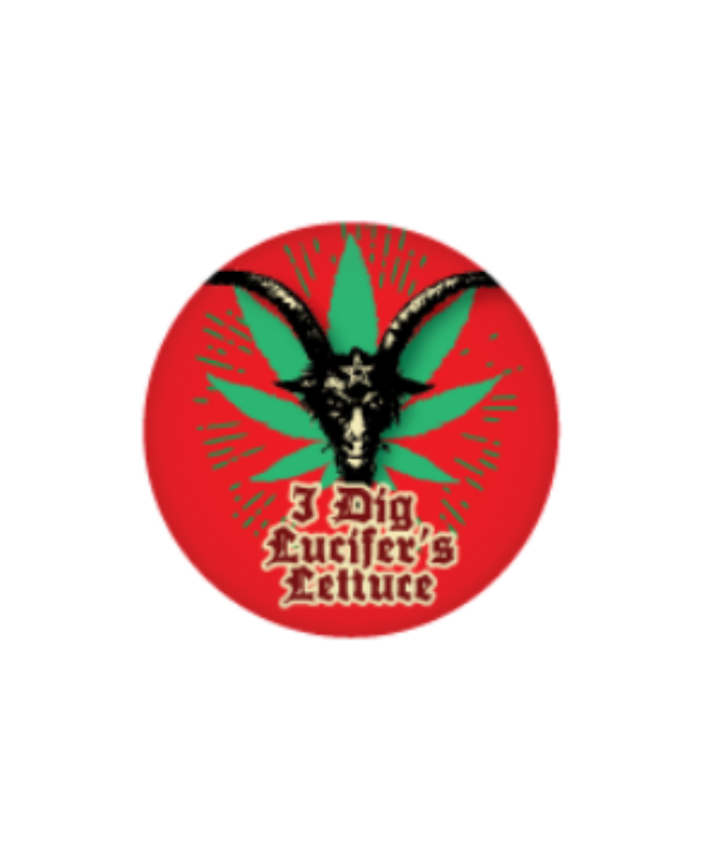 This 1.25" "Lucifer's Lettuce" culture button will be sure to spice up any backpack, jacket, or purse!