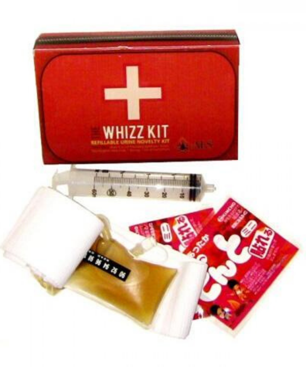 The Whizz Kit comes complete with over 4 oz of toxin and disease free premixed synthetic urine, two organic heat pads, easy to read temperature strip, 100% cotton detachable elastic belt plus a 60 ml syringe. All detailed instructions included. The refillable belt is a "gravity operated" device. It delivers a toxin free urine sample through a rubber tube that is part of a light weight apparatus which wraps around you waist and is worn under your clothing. The urine is easily delivered by releasing the two clips that retain the urine in the bladder bag. The refillable belt comes completely assembled and is very simple to use.