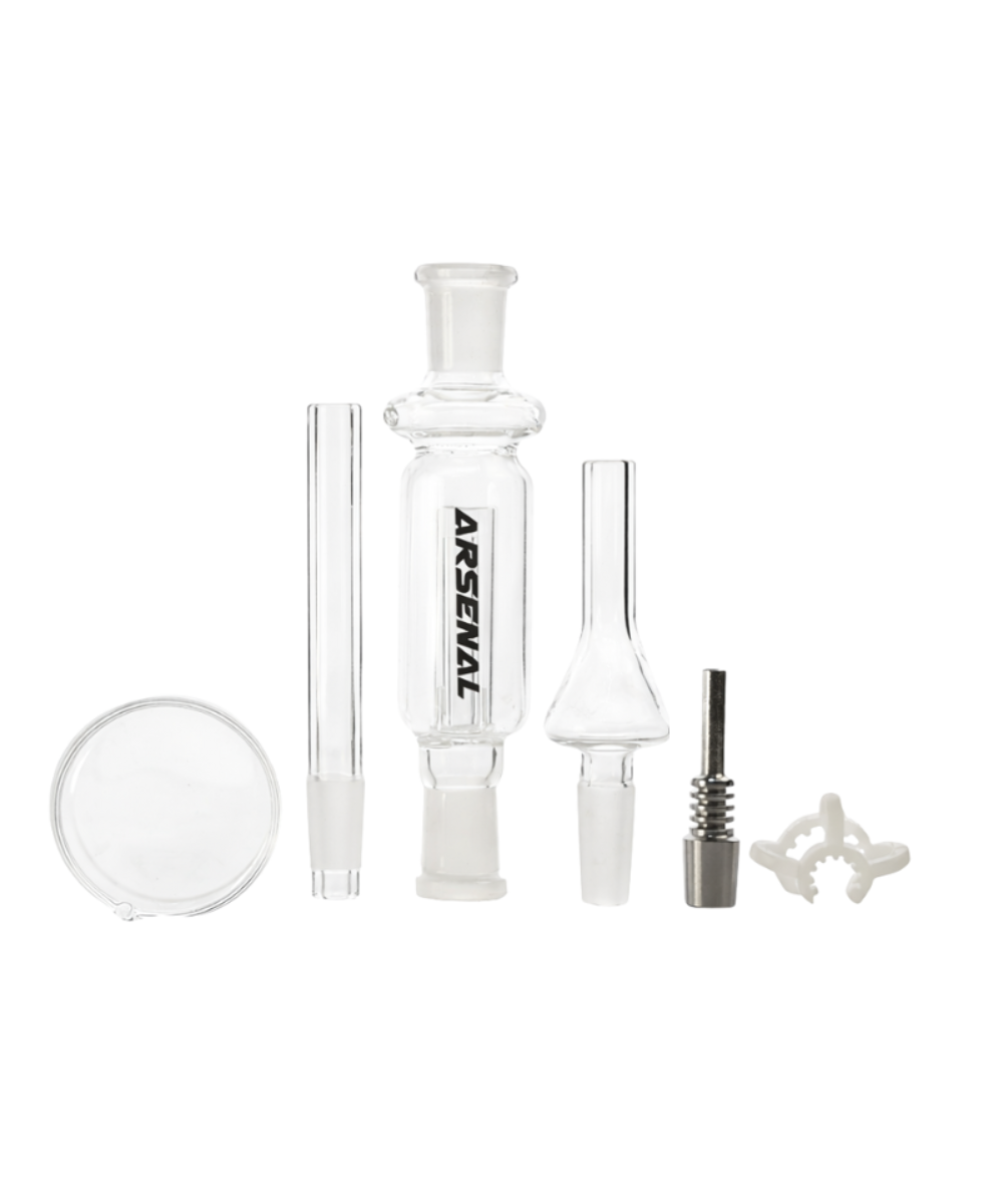 The Arsenal Micro Nectar Collector delivers a compact and efficient concentrate experience with its minimalist design and easy-to-use form. Built for portability and convenience, this micro-sized nectar collector is ideal for quick sessions while maintaining smooth, direct airflow. Crafted from durable glass, it offers reliable performance in a small footprint, making it perfect for on-the-go use or discreet personal setups. Its simple structure allows for easy handling and cleaning, making it a practical choice for users who want straightforward functionality without extra bulk.