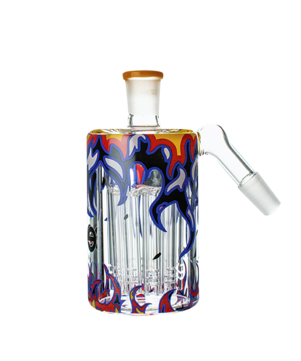 Enhance filtration and keep your piece cleaner with the Cheech Glass 14mm 45° Flames With Tree Perc Ash Catcher. Crafted from durable glass, this ash catcher features a 45° joint angle for compatible setups and a built-in tree percolator that cools and filters smoke for smoother hits. The bold flame design adds eye-catching style while helping reduce debris entering your bong. A functional and decorative upgrade for any 14mm water pipe setup.