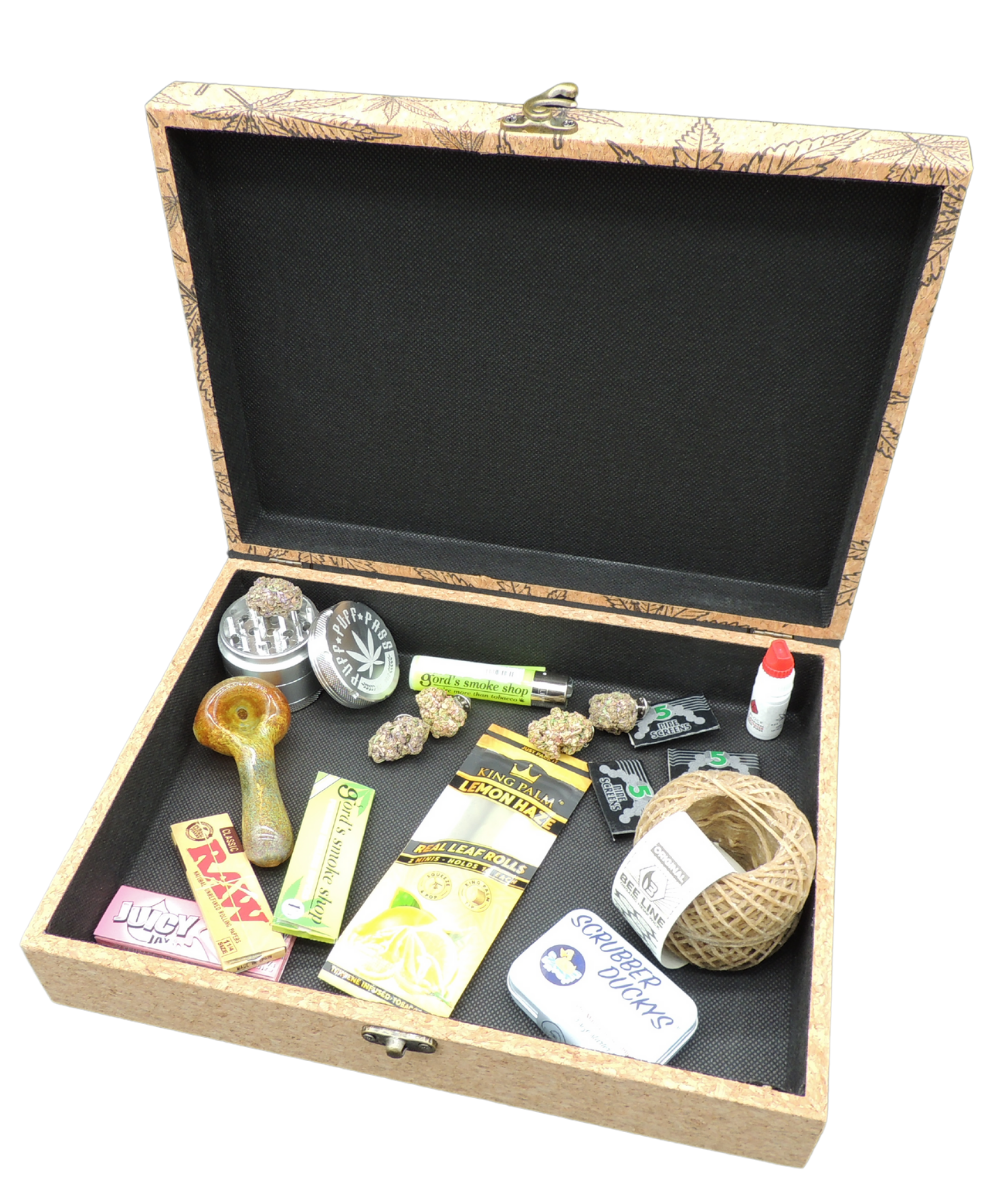 Store your pot products or whatever you want in this beautiful cork box. 11.50" x 8.5" x 2.75", this box is an excellent size to elegantly store away for when it is needed! A metal clasp is used to keep your goods stored safely inside.